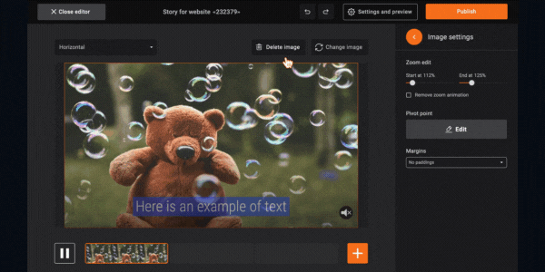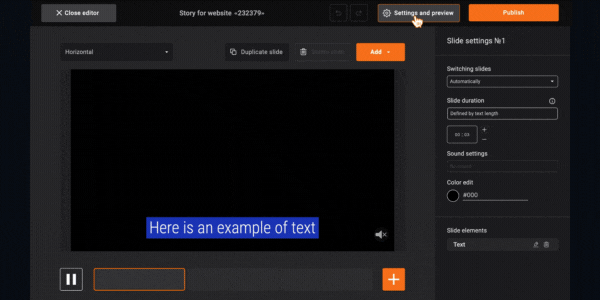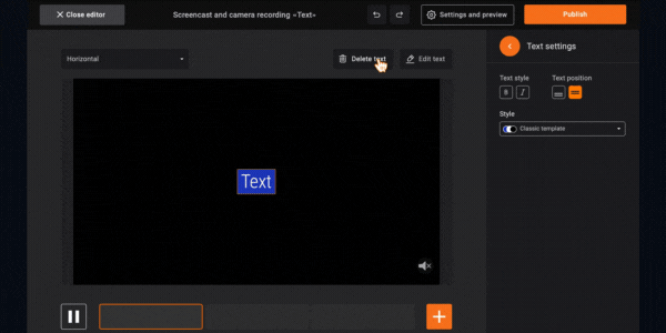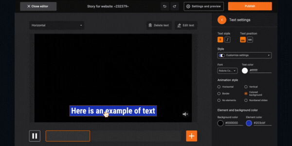 Configuring content general settings is now available from to the top bar. Press 'Settings & preview' button to change the title, general style, and track of the video.